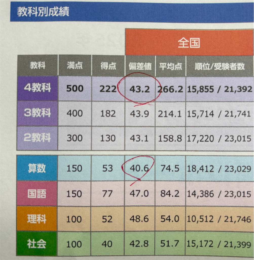 中受ガチ勢だって多く受けるテストとしてこの結果はまあ想定内です(偏差値30台も覚悟してました)。